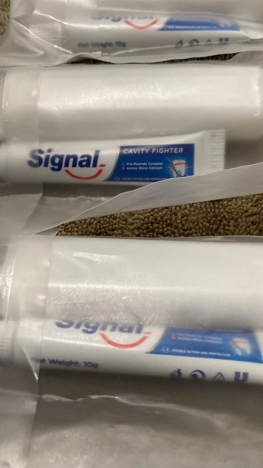 Lot of 13 travel size signal tooth paste and toothbrush.